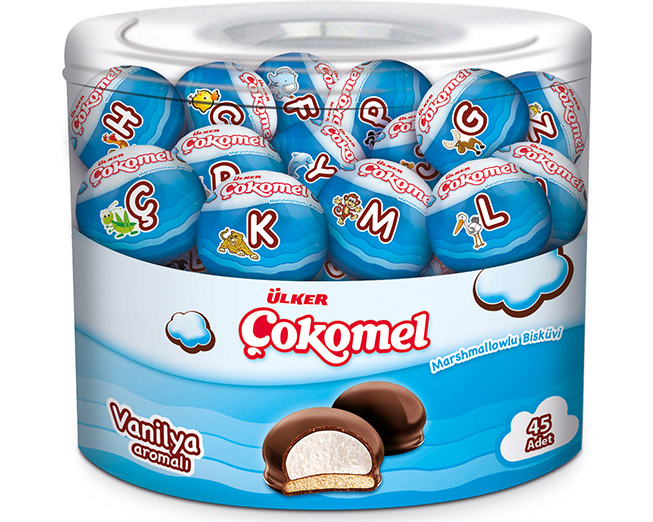 Ulker Vanilya Aromali Cokomel / Chocolate Covored vanilla Marshmallow Biscuit 180 Gr.