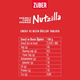 ZUBER NUTZILLA KAKAOLU FINDIK KREMASI / COCOA HAZELNUT CREAM - 315 GR