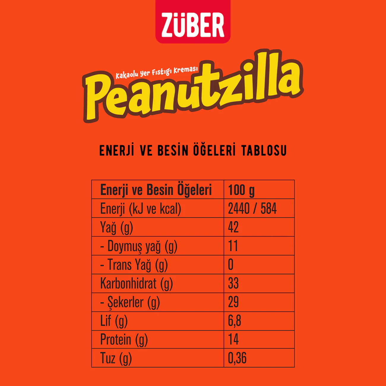 ZUBER PEANUTZILLA KAKAOLU YER FISTIGI KREMASI / COCOA PEANUT CREAM - 315 GR