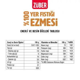 ZUBER YER FISTIGI EZMESI 100 % / PEANUT BUTTER 100 % - 315 GR