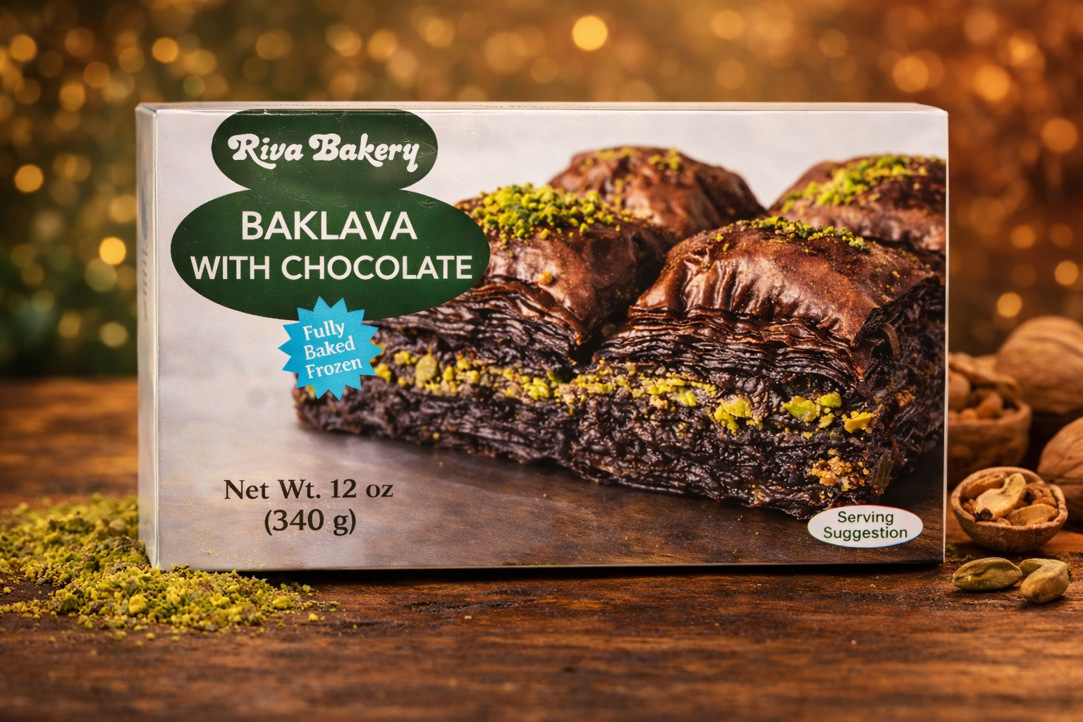 Riva Bakery Baklava Cikolatali Antep Fistikli / Choco Baklava With Pistachio - 12 Oz - 340 Gr
